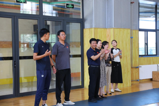 当日正值学校大课间,王志强院长一行首先观看了学生们的街舞、花样跳绳、啦啦操等特色体育表演,现场氛围热烈,学生们的活力与技巧展现出学校体育教育的成果。随后,来宾参观了学校教学设施,深入了解校园体育硬件环境与日常教学场景。