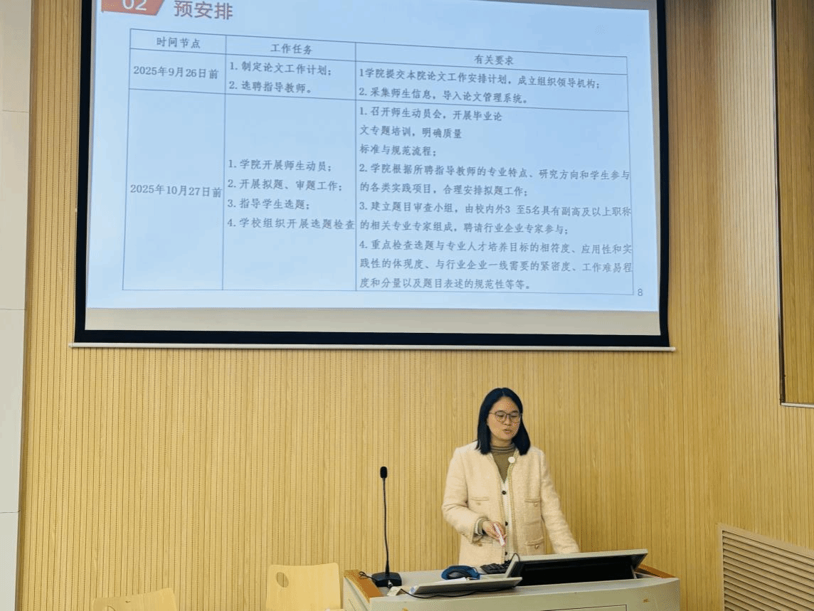 接着,教学部副部长杨瑞洁结合文件要求,为同学们带来了一场“论文规范与写作技巧”的精彩讲解。系统讲解了毕业论文的规范要求与撰写注意事项,为学生提供了具体指导和实操建议。