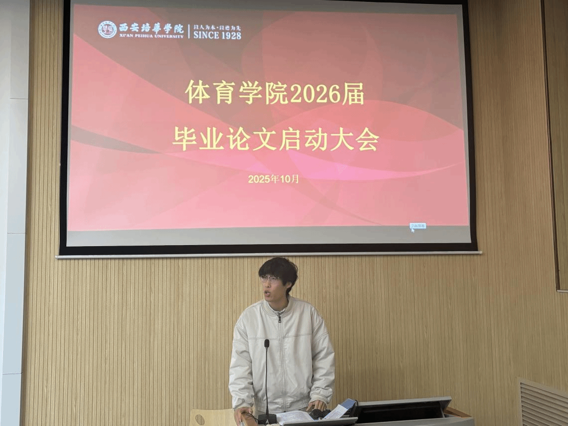 2025年10月23日晚,西安培华学院体育学院于育英楼3505召开2026届体育教育专业毕业论文启动大会。本次大会旨在全面部署毕业论文工作,明确研究方向与写作规范,激发学生科研热情,确保论文质量与学术水平的稳步提升。
