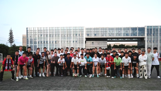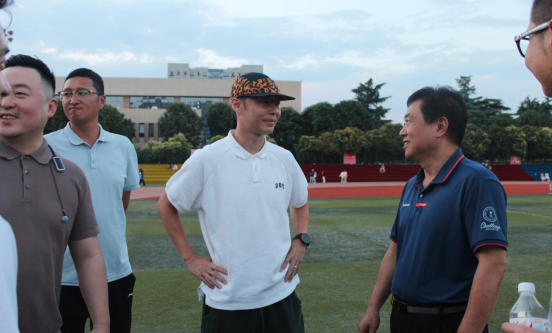 足球代表人物糜昊伦在足球场与师生交流