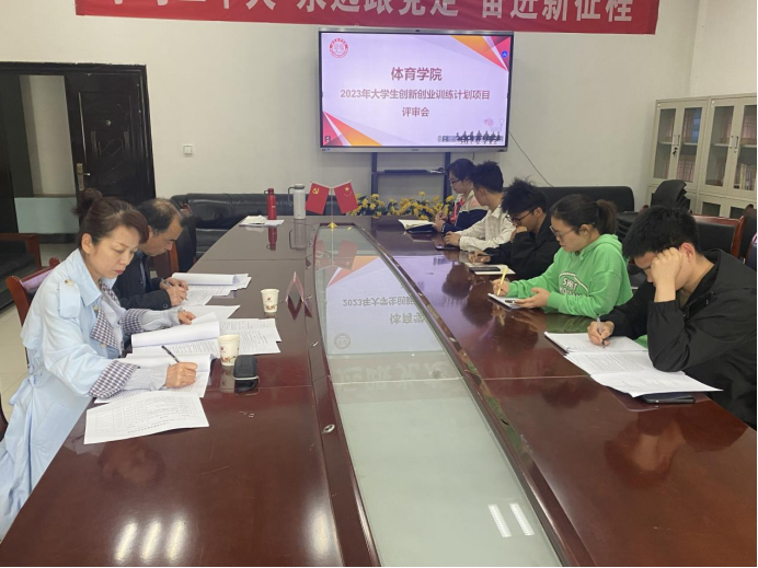 2023年4月14日中午,在体育学院会议室召开了2023年大学生创新创业训练计划项目评审工作。本次评审会议由体育学院雷耿华副院长主持。专家评审组主要由医学院教学副院长王菊宁副教授、数智营销系市场营销专业带头人杨柏欢副教授及基础系韦蕊副教授组成。