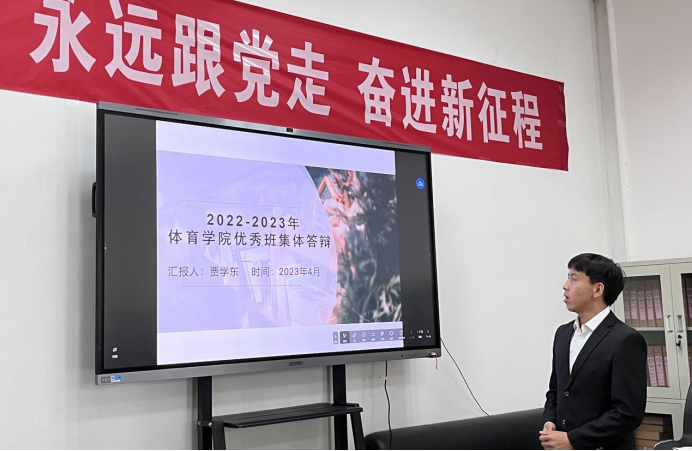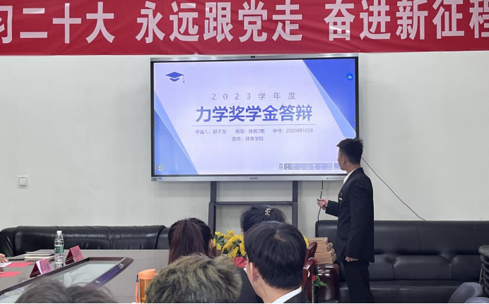 随后进行表彰仪式,体育学院党支部书记、行政副院长马德厚为五育并举先进个人进行颁奖表彰。在表彰结束后,会议开始进行年级青年代表、优秀班集体代表、力学奖学金代表、大学生年度人物、大学生自强之星代表答辩会。在答辩中,同学们姿态端庄大方、言语铿锵有力,展现出我院青年学子文化自信的精神面貌。