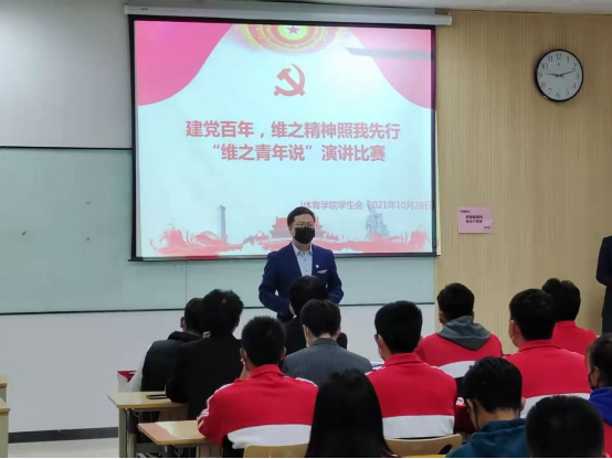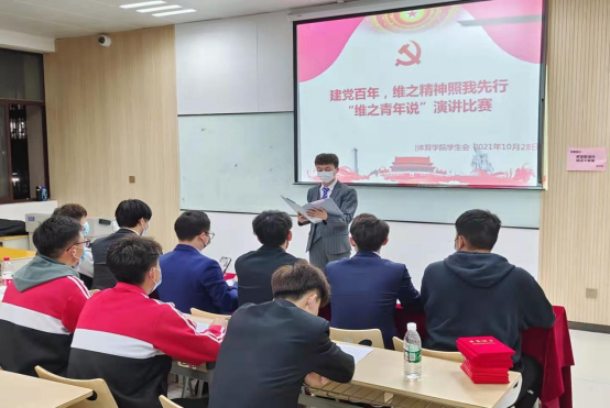 秋枝秋叶秋草黄,初冬已临天转凉。今年是中国共产党成立100周年,同时也是姜维之校长诞辰95周年,伴随着党中央号召的班团一体化建设,为了提升大学生思想政治教育,筑牢学校校风、学风建设,传承“维之”精神 ,体育学院于2021年10月28日在至善楼8205教室,开展以“建党百年,维之精神照我行”为主题的“维之青年说”演讲比赛。