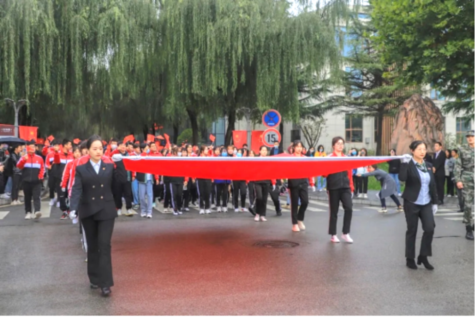 百名师生代表、民主党派代表、校友代表组成的12个方阵以饱满的热情传递红旗,歌颂盛世