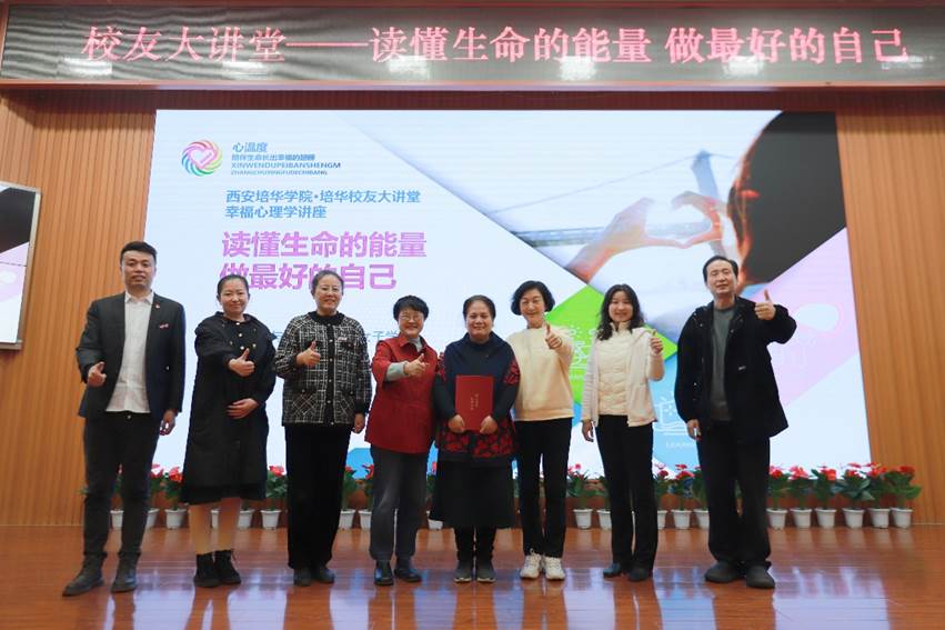 为壮大学校校外生涯导师师资队伍,鼓励更多优秀校友反哺母校,10月27日下午,由校友服务与发展中心、女子学院主办,人文与国际教育学院、学生潜能发展中心协办的培华校友大讲堂“读懂生命的能量,做最好的自己”幸福心理学讲座在明德楼报告厅举行。本次讲座特邀培华女大87届校友、全国家庭教育实验研究基地负责人、中国小公民道德建设基地负责人、青少年潜能开发训练师温耀婕女士作为主讲人,为培华学子解读生命力量,从而更好做自己。
