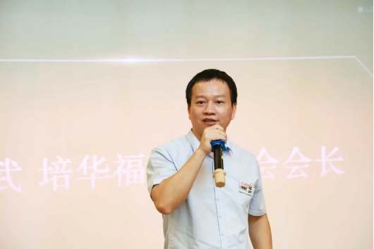 福建校友会会长郑爱武作为特邀嘉宾向大会表示祝贺,作为培华女大首届男生,他回忆了在培华的求学趣闻,对于目前取得的成绩,向母校表示感谢。