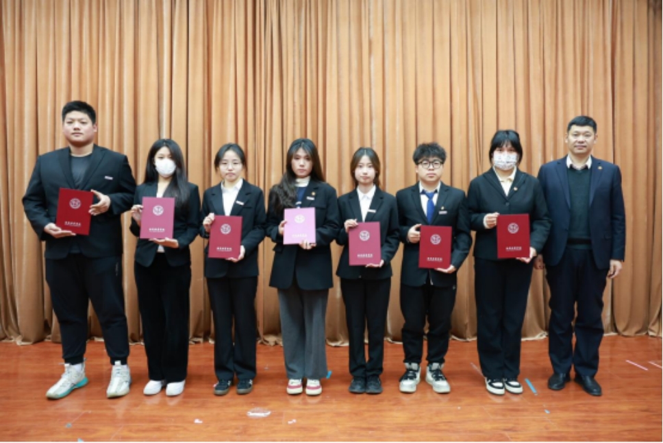 柳雨主任、蔡亮部长分别为第一届主席团成员、学生干部颁发聘书