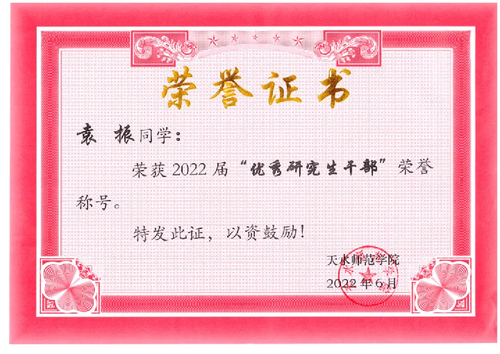 面对硕士毕业论文与紧张实验时间的双重压力,袁振展现出了超乎常人的时间管理与自我驱动力。他不仅顺利完成了国家自然基金项目的结项工作,还在有限的时间内完成了高质量的硕士毕业论文,并成功获得了“省级优秀硕士论文”的荣誉,为自己的研究生生涯画上了圆满的句号。