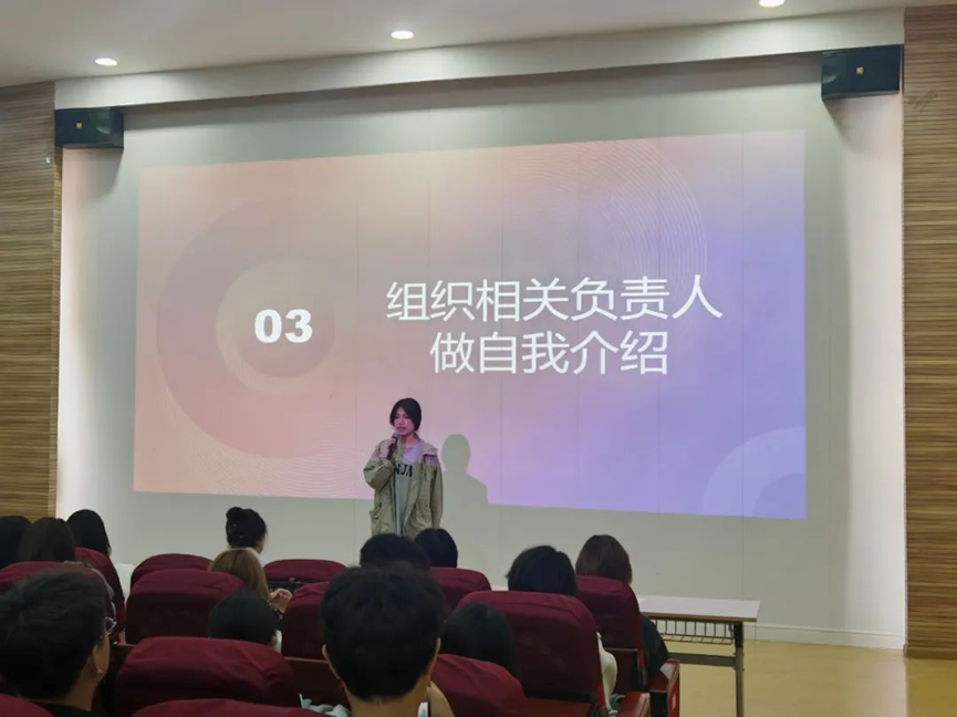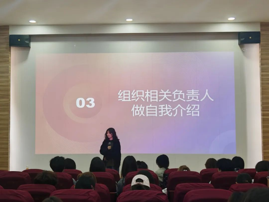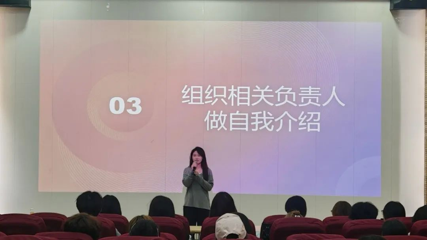 在随后的自我介绍环节,各组织负责人纷纷上台,用简短而富有感染力的语言介绍了自己的姓名、专业、爱好以及加入协会的初衷和期望。她们的热情和真诚赢得了现场阵阵掌声,也为新成员们树立了榜样。