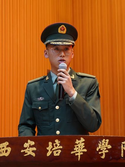 优秀教官学长传媒学院梁宇德,分享了他作为教官学长在新生军训期间所付出的努力,他讲到作为学长更多的是对自己的一次锻炼与磨砺,他希望可以在这条路上继续前行,服务好新一届学弟学妹,同时积极配合好学校工作,用实际行动谱写美好青春。