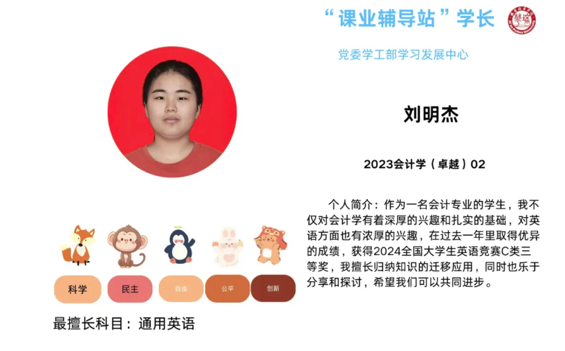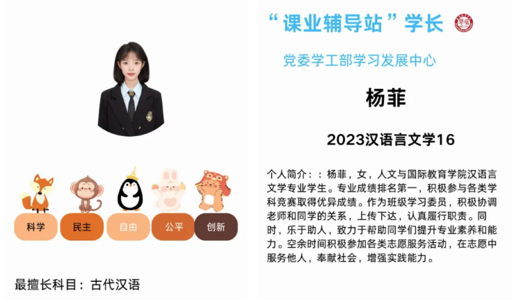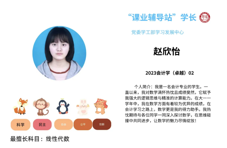 活动介绍:“课业辅导站”是学习发展中心针对我校基础课程学习,组织开展以线下一对一咨询方式为主的学风建设活动。由学院各学科优秀学生进行朋辈互助、志愿帮扶,为有学业辅导需求或学习困难的同学答疑解惑,帮助同学们备战期末考试,提高他们在学科上的学习能力与学习成绩,促进学院同学的交流分享与共同进步。