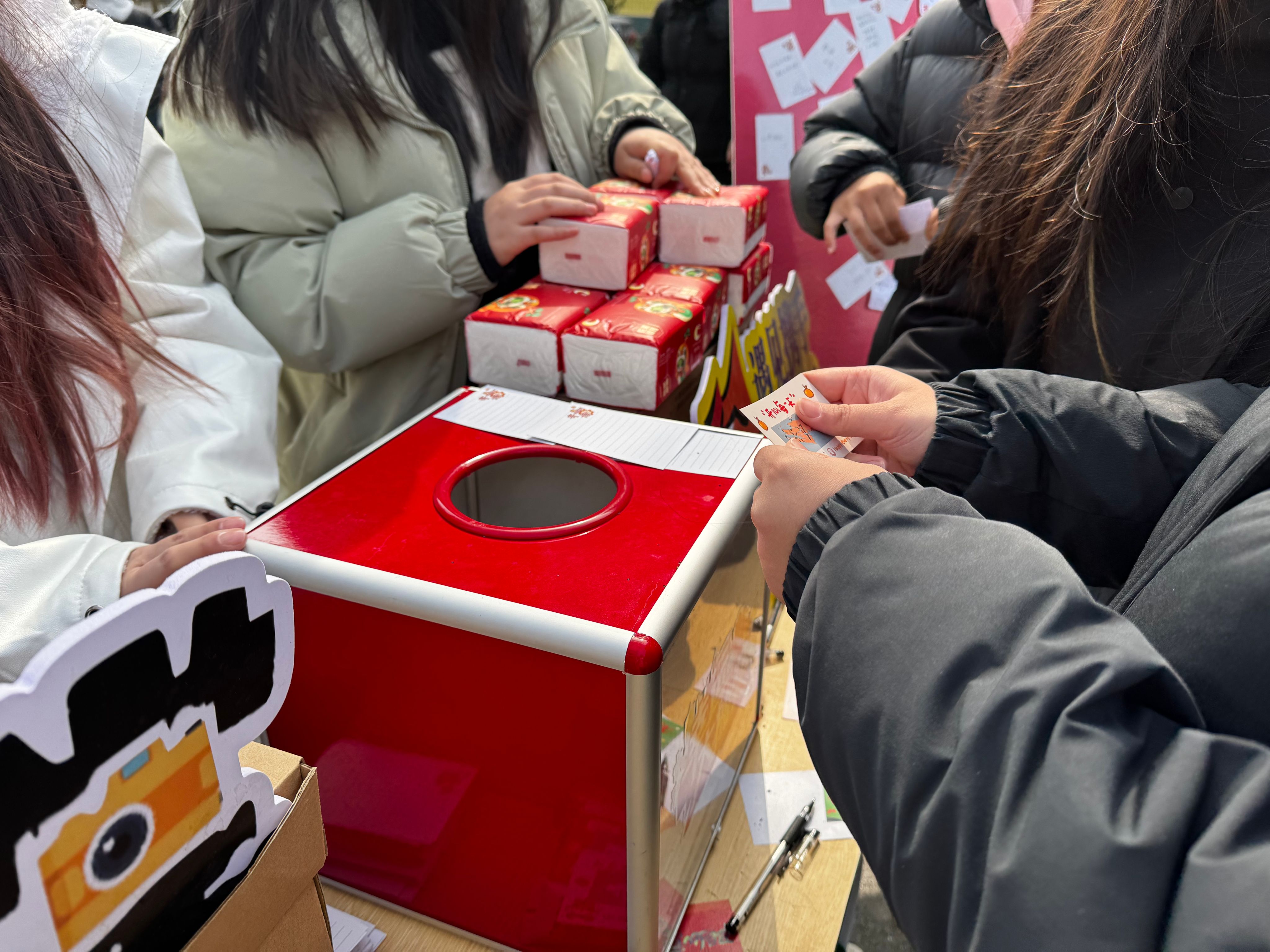 “惊喜刮刮乐”活动深受同学们的喜爱,每张刮刮乐背后都藏着不同的惊喜,有的是温馨的祝福贺卡,有的是小巧便捷的小台历,方便同学们规划新一年的日程;有实用又贴心的抽纸。这些小礼品承载着美好祝愿,为同学们带来新年惊喜。在崭新的一年里,希望同学们可以坚定信念,去努力,去拼搏,每一次付出,每一次坚持都是在为自己增添光彩。