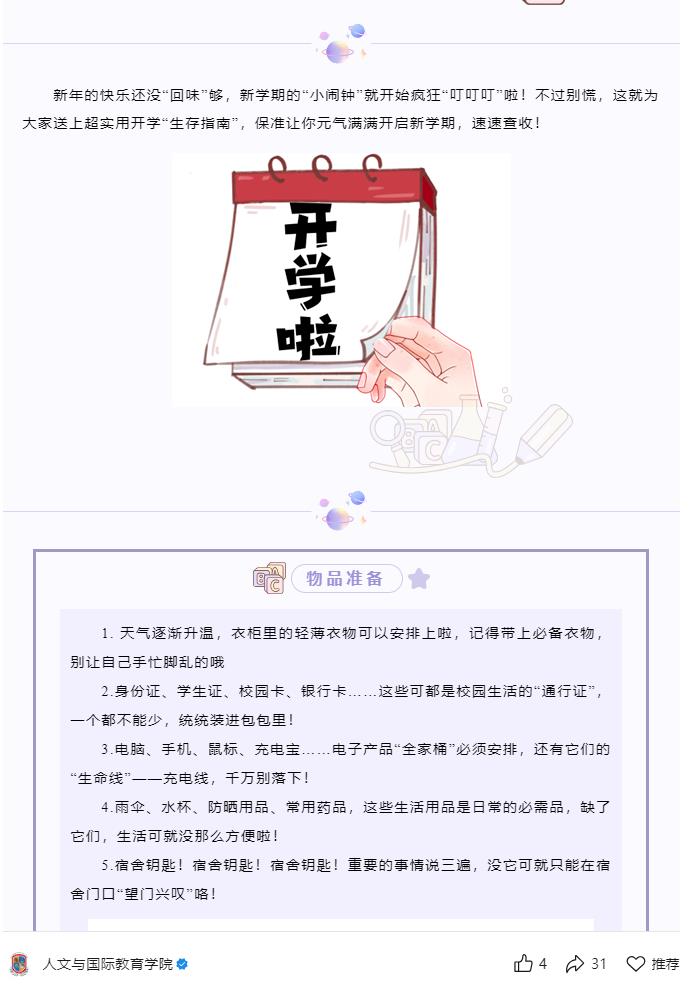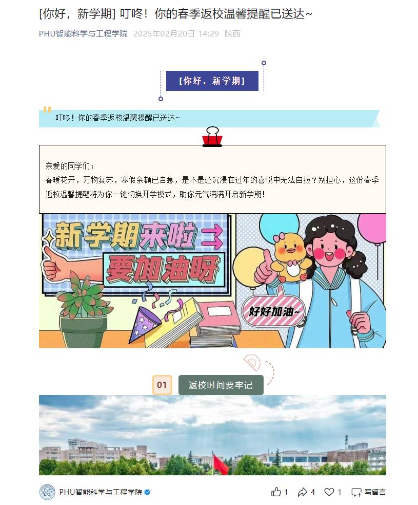 学生安全是第一要务,也是学校工作的重中之重,校院两级将持续关注学生返校情况,加强安全教育和管理,为学生创造一个安全、和谐的学习生活环境,助力学生开启新学期的美好征程。