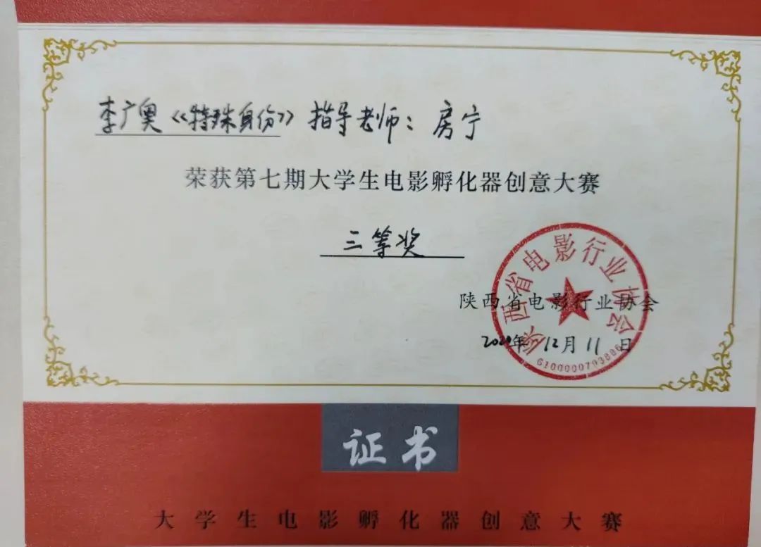 8.2020年陕西省电影行业协会第七期大学生电影孵化器创意大赛三等奖