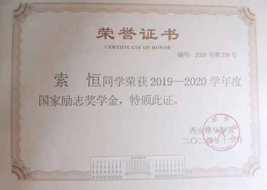 索恒,男,汉族,智能科学与信息工程学院2018级软件工程专业学生。他具有坚强独立、勤奋刻苦、积极乐观的性格。自入学以来,该生学习认真踏实,勤奋自觉;思想积极上进,立场坚定;踊跃参加各类实践活动,严格要求自己,在思想、学习、生活、个人实践等方面均有着突出表现。