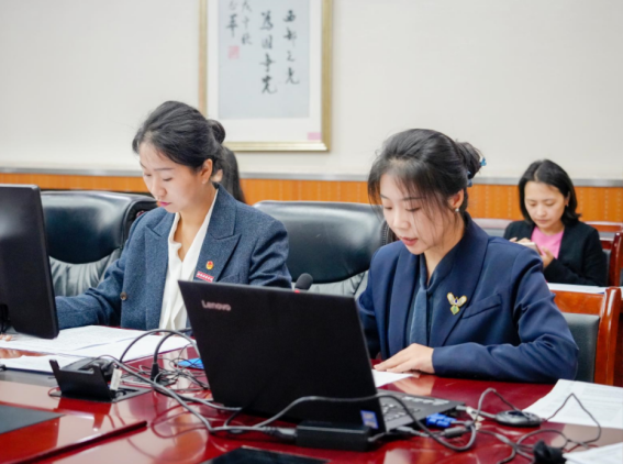 ▲纪委办公室负责人吉小平监票、一站式服务办公室主管王江茹唱票、学生资助管理与服务岗王惠冉计票