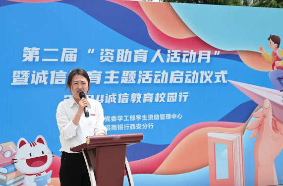 招商银行西安分行零售金融总部师佩琪发言希望在校大学生防范金融风险,提高安全意识,高校助学贷款要及时还款。希望学生树立感恩意识和诚信观念,树立自强自立、诚信感恩、奋发进取的优良品质。