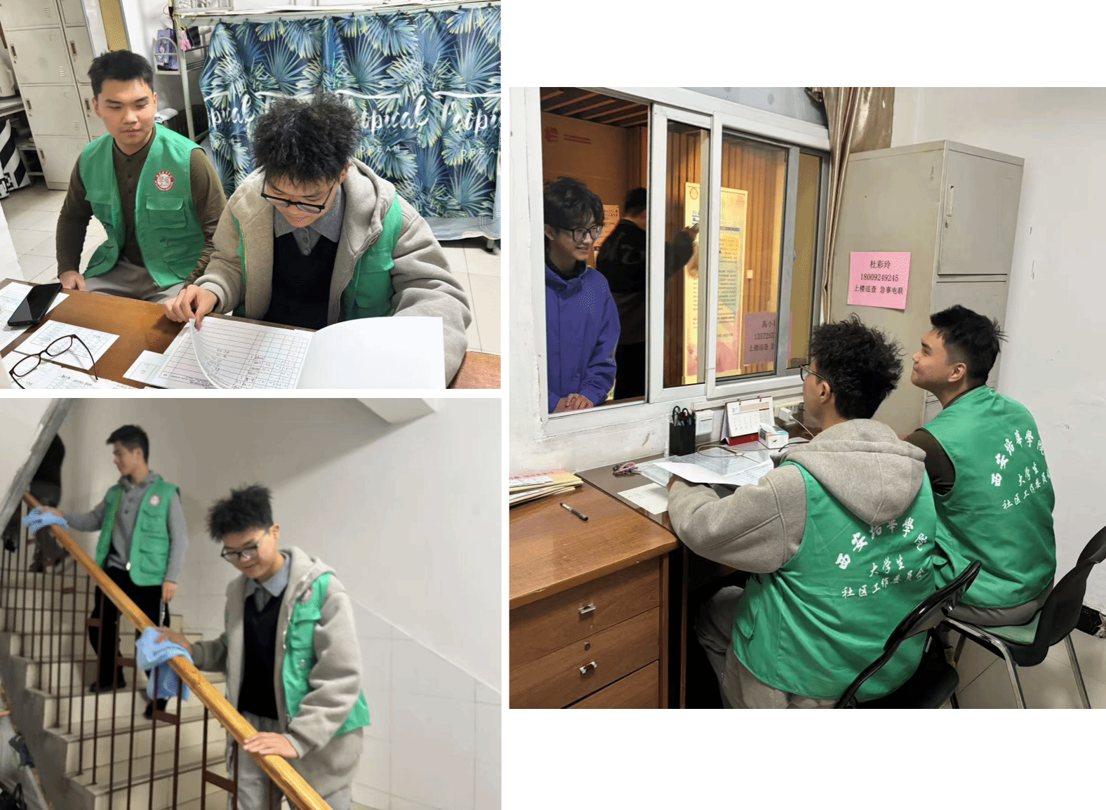 换位体验知感恩,致敬平凡守护者。笃行学生社区志愿者与宿管阿姨一同值班,在实践中体会宿管工作的琐碎与辛苦,用真诚服务致敬校园里的平凡英雄。