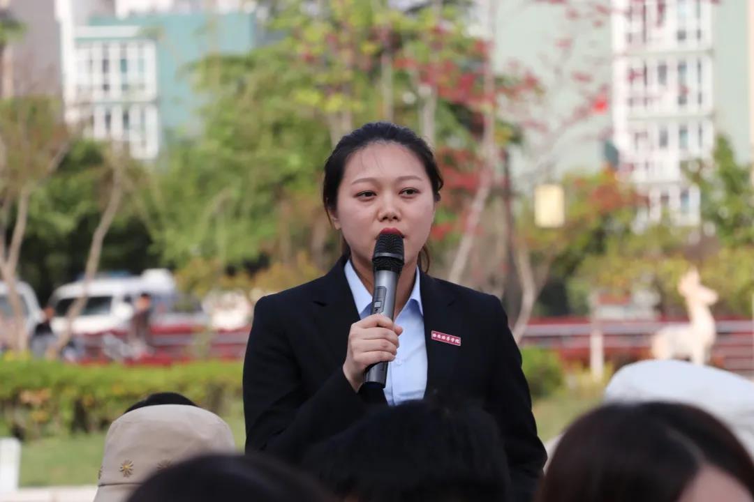 她首先表达了对老师、学校和国家深深的感谢。她在发言中说到,资助育人工作的有效实施,让她在成就自我的同时,也能够积极的帮助别人。因为获得国家助学金,让她在生活上可以没有后顾之忧,她才可以更加用心的学习,更好的充实自己。她深深感受到了国家的温暖,也将把这一份温暖永远的传递下去。