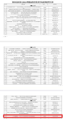 根据《中共陕西省委教育工委关于第六届陕西高校“阳光护航”心理育人宣传季省级有关活动获奖情况的通报》(陕教工〔2021〕166号)的文件,我校建筑与艺术设计学院辅导员赵煜柠的案例《上天会拯救我——一例大学生过度迷信错误认知咨询案例报告》荣获“陕西高校第七届心理健康教育优秀咨询案例三等奖”;