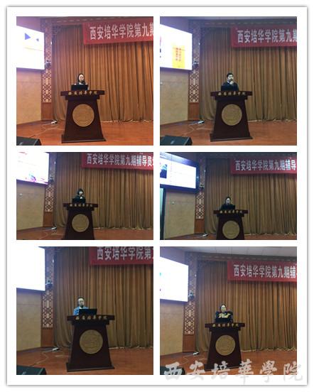 ——辅导员的心理健康与阳光心态塑造。学生潜能发展中心辛雅丽教授,以“辅导员的心理健康与阳光心态塑造”为主题,从辅导员的角色定位和岗位要求,辅导员心理素质面临的挑战,辅导员阳光心态的自我塑造等三个方面来做分享。她讲到辅导员是学生的人生导师和健康成长的知心朋友,在平时的日常生活与工作中应建立起积极的价值观、释放出强劲的影响力、获得健康快乐的人生,来更好的引导学生,帮助学生更好的成长、成才。