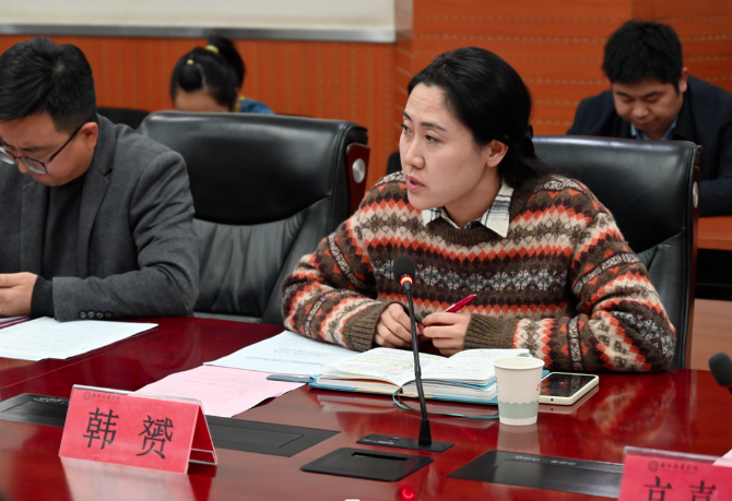 学生潜能发展中心主任韩赟从学生心理隐患排查、重点学生库摸排、阳光护航心理健康教育开幕会等方面进行重点工作部署。她讲到,春季是心理问题的高发期,各学院要做到重点人群、边缘人群摸排,对存在隐患学生及时上报,做到一人一档。