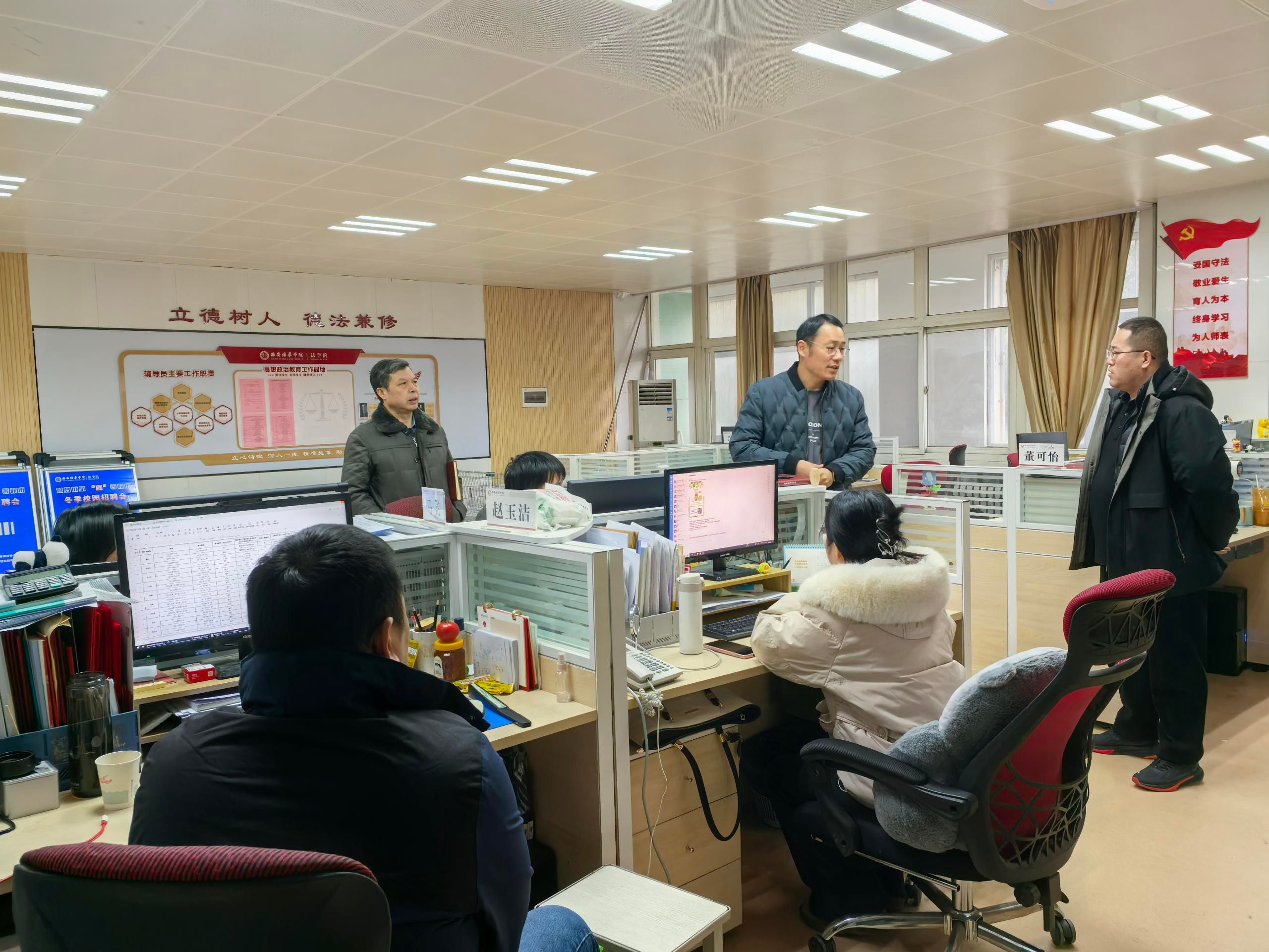 为了及时了解学校开学工作进展情况,保证新学期各项工作正常有序进行,2月22-23日,党委学工部部长权勇太、副部长杨媛、团委书记董莹带队,前往各二级学院进行了开学工作检查走访。了解各学院在学生返校、一站式社区安全稳定排查、团学工作等一系列开学前各项工作的准备情况,同时对学院的学生返校、安全教育、学生管理、一站式社区走访、团学工作等工作进行了全面细致的部署。本次工作走访,为本学期开学工作的全面有序展开打下了坚实的基础。立足新学期,面对新任务,学工队伍将继续夯实各项基础工作,及时发现并解决工作中的问题,为学生的顺利返校保驾护航。