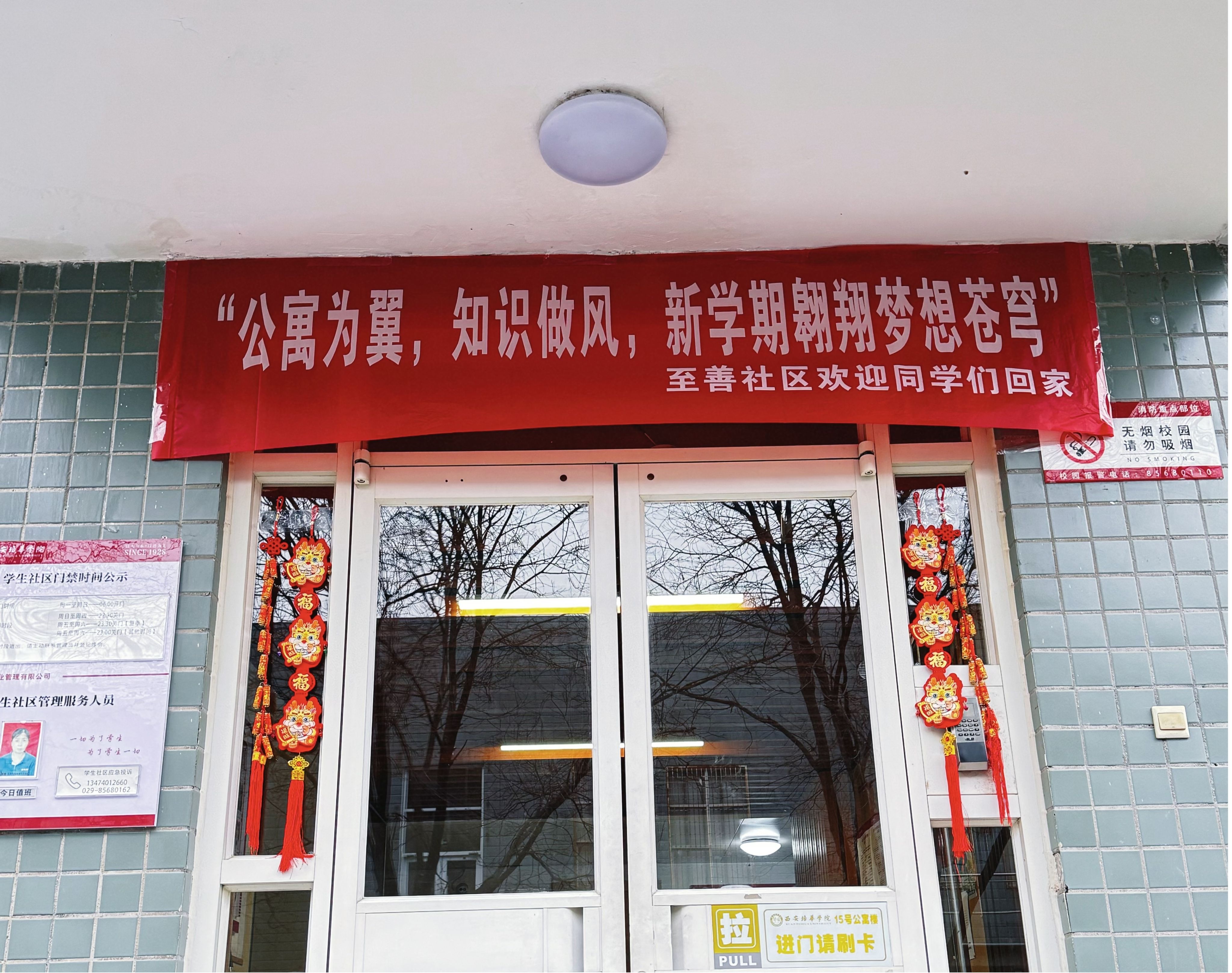 2月22日至23日,西安培华学院迎来了春季学期学生集中返校的日子。“一站式”学生社区为欢迎培华学子开启新学期新征程,在社区开展“新春纳福迎学子”与“惊喜刮刮乐”文化活动,各学生社区营造浓厚的新年文化氛围,为新学期拉开序幕,为同学们送上新学期的美好祝愿,以满满的福气与惊喜开启新学期的大门。