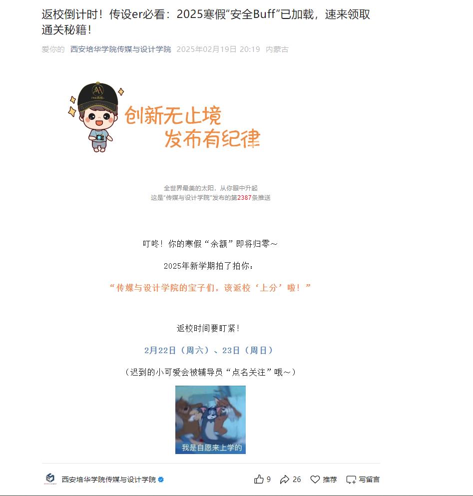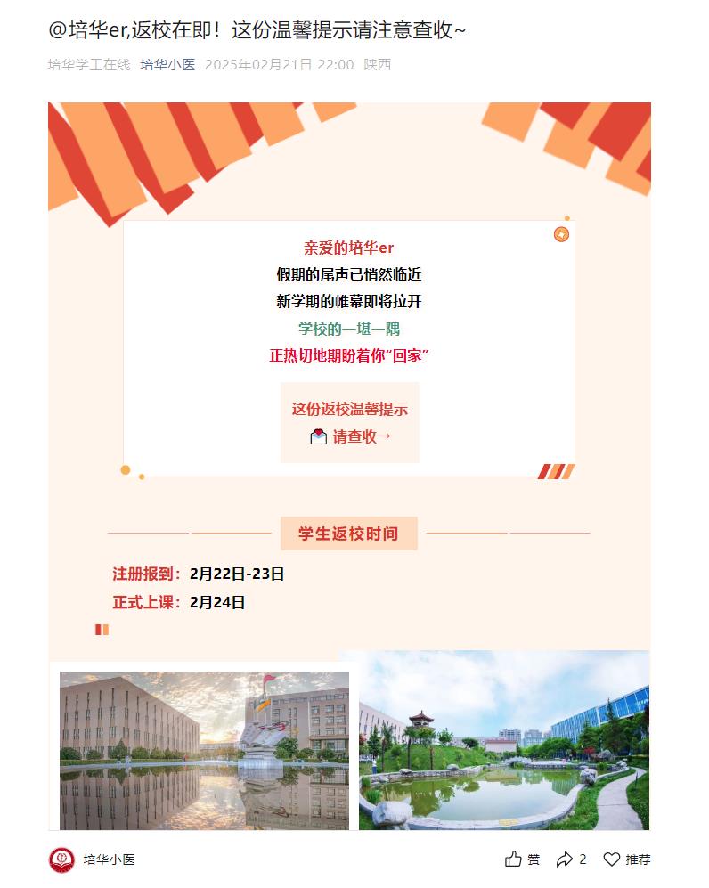 随着新学期的脚步日益临近,为确保学生平安、顺利返校,西安培华学院校院两级高度重视,协同发力,共筑学生返校安全防线,全面部署各项安全保障工作,并向全体学生发布了详细的返校安全工作提示。