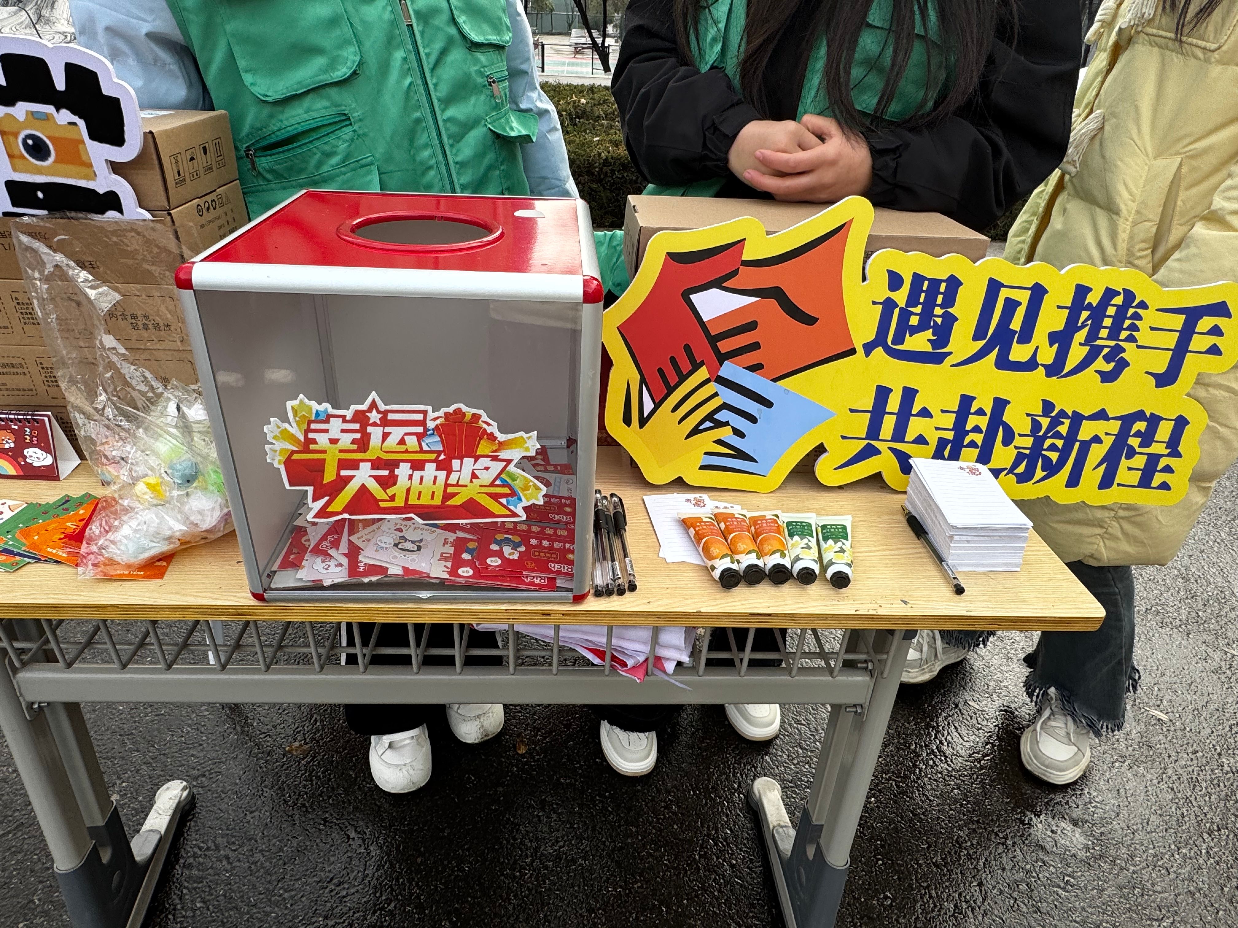 “惊喜刮刮乐”活动深受同学们的喜爱,每张刮刮乐背后都藏着不同的惊喜,有的是温馨的祝福贺卡,有的是小巧便捷的小台历,方便同学们规划新一年的日程;有实用又贴心的抽纸。这些小礼品承载着美好祝愿,为同学们带来新年惊喜。在崭新的一年里,希望同学们可以坚定信念,去努力,去拼搏,每一次付出,每一次坚持都是在为自己增添光彩。