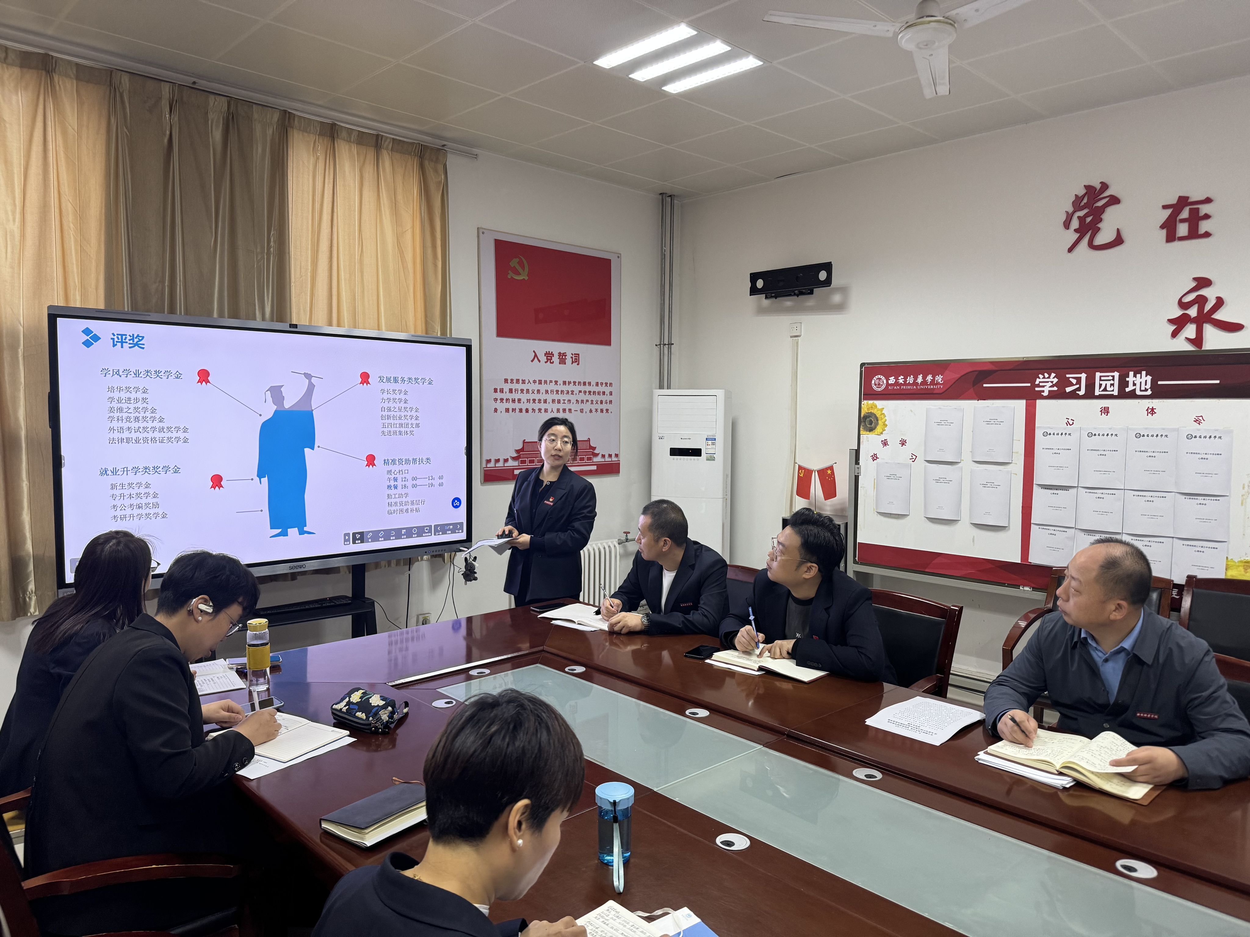 同时这也是为学生做好优良学风的榜样表率,学生、辅导员同向同行,共同进步。此次领学、集体学习进一步夯实了辅导员们的专业基础,提升了他们的职业素养。在领学过程中,罗海芸和刘慧老师不仅详细讲解了各项政策的具体内容和要求,还结合实际案例,深入浅出地分析了政策背后的逻辑和意义,让辅导员们能够真正做到学以致用。此外,通过模拟演练和互动问答等环节,辅导员们还积极参与其中,不仅加深了对政策的理解,也锻炼了自己的应变能力和沟通技巧。