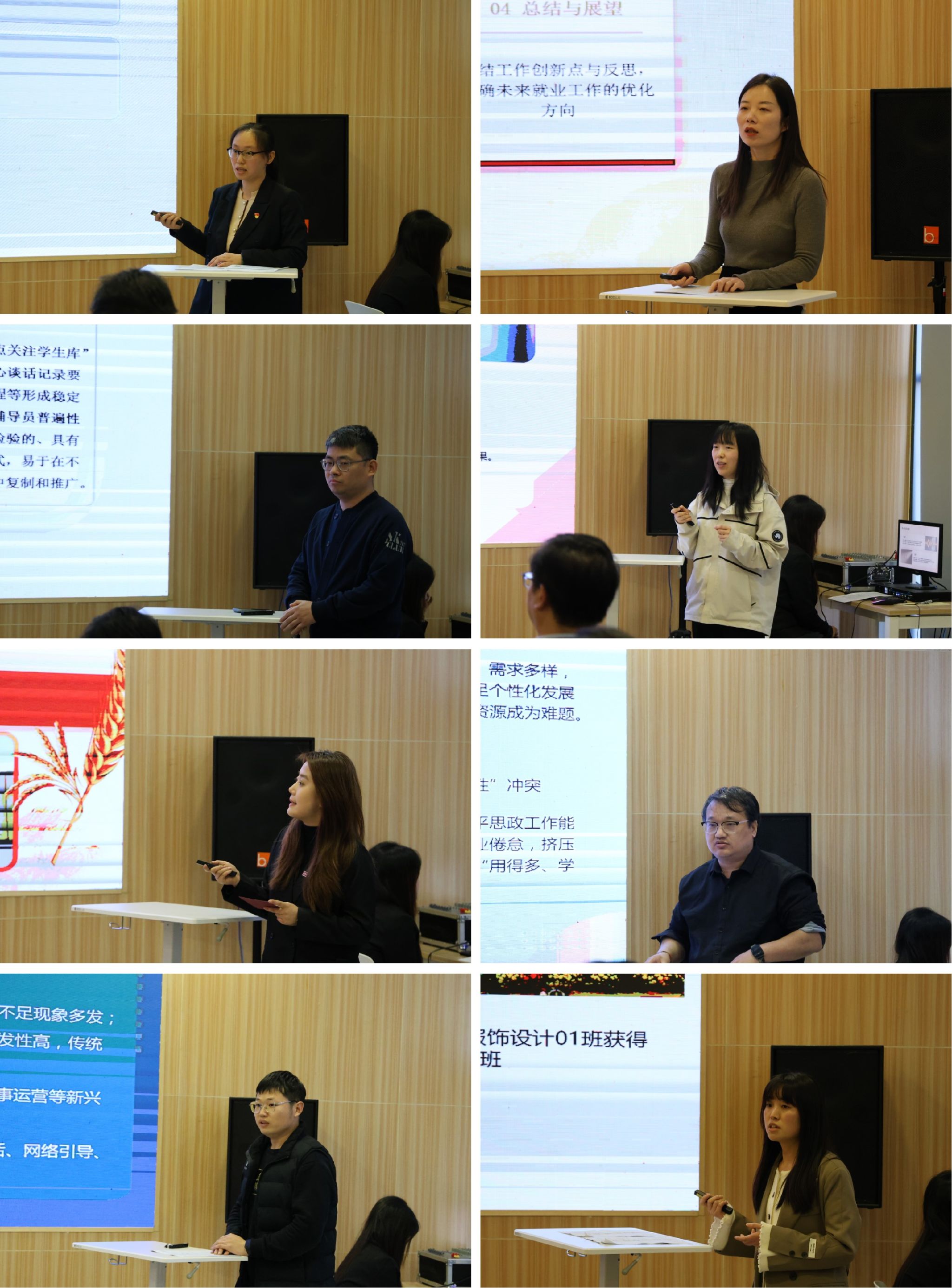 答辩环节中,各辅导员老师围绕班团一体化、心理危机干预、谈心谈话技巧、学生干部培养、人工智能赋能、职业生涯规划与就业指导等多个具体工作,从背景理念、实施路径、实践成效及创新亮点等方面进行全面阐述,充分展现了扎实的专业素养与丰富的育人实践经验。