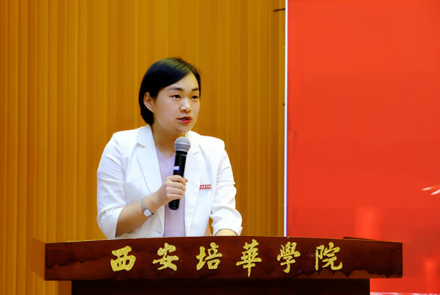 学生服务中心思政主管杨媛宣读《西安培华学院关于举办首届公寓文化月活动的通知》