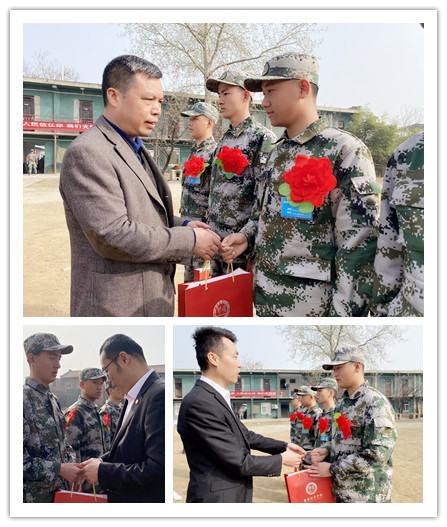 传媒学院党委书记、行政副院长江俊瑞,建筑与艺术设计学院党委书记、行政副院长权勇太,智能科学与信息工程学院党总支书记、行政副院长南兵为各自学院的新兵送上入伍纪念品