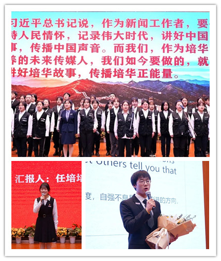 传媒学院新闻学专业1902班,践行勤学笃志,敢为人先的班训。本次汇报展示由宣传委员任培培主讲,结合专业特色,以“新闻播报”的形式展示班级各方面所获成果。从“创建姜维之班”以来,新闻学1902学习成绩显著增长;各项竞赛成果累累;文明公寓建设效果显著;社会实践志愿服务广受好评。全班34位同学肩扛相机,身着马甲,激情饱满,展现出属于新闻学子独特的热血青春。