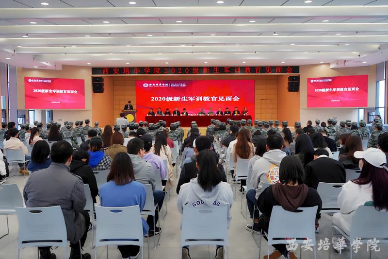 10月9日上午,西安培华学院2020级新生军训教官见面会在恒友楼四楼多功能厅举行,我校党委学工部部长、学生服务中心主任、团委书记蔡亮,党委学工部副部长、学生服务中心副主任姚斌,中国人民解放军32147部队81分队政治教导员任光辉中校,各二级学院行政副院长、党委(党总支)书记,全体新生辅导员、军训教官、学长教官百余人参加了本次活动。