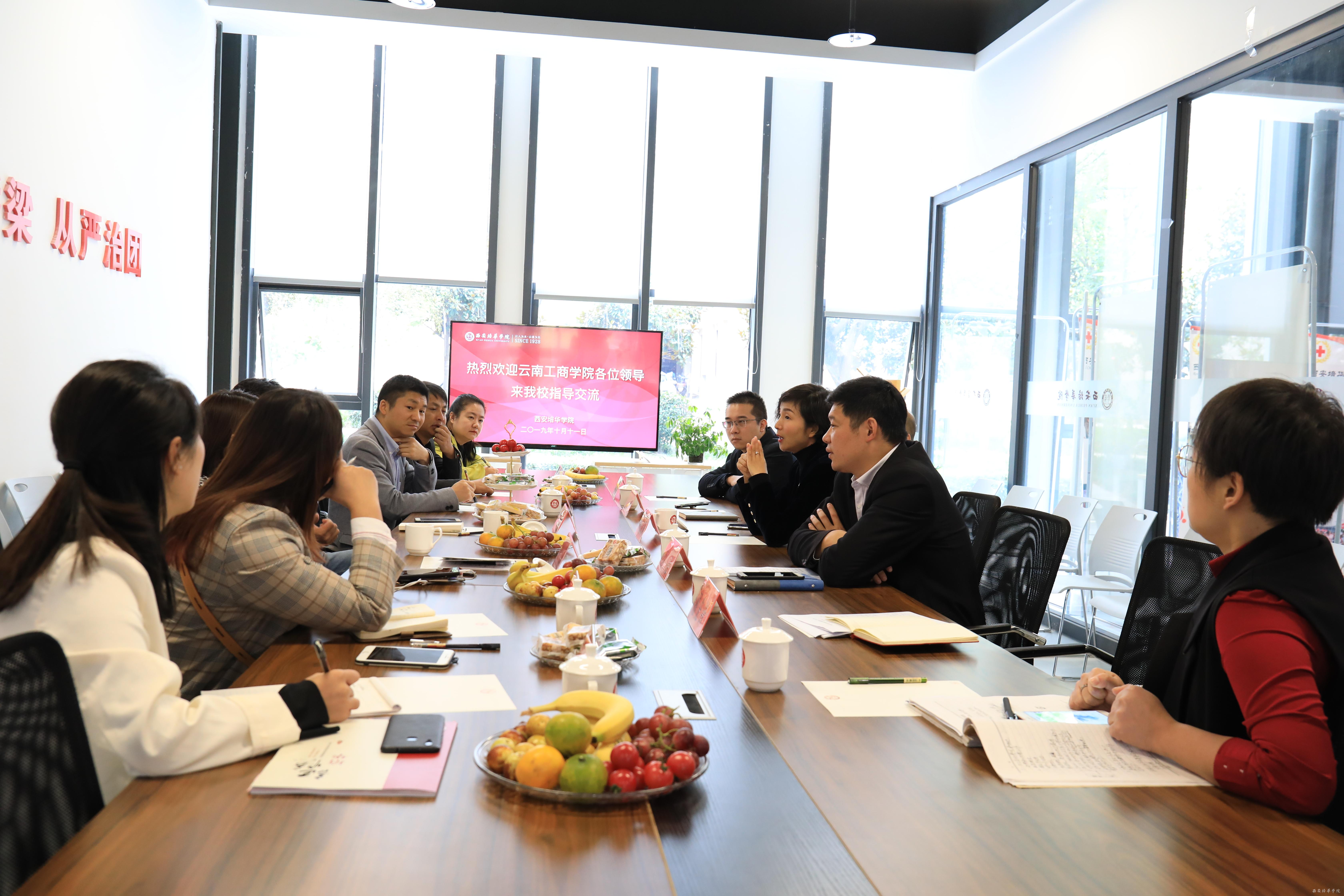 10月11日上午,云南工商学院党委书记于波,副校长李娅等一行7人来培华调研交流。学校党委书记胡俊生教授,副校长、党委副书记姚文静副教授,学工部副部长、团委书记蔡亮,学生服务中心副主任张静远等领导热情接待了其一行人。