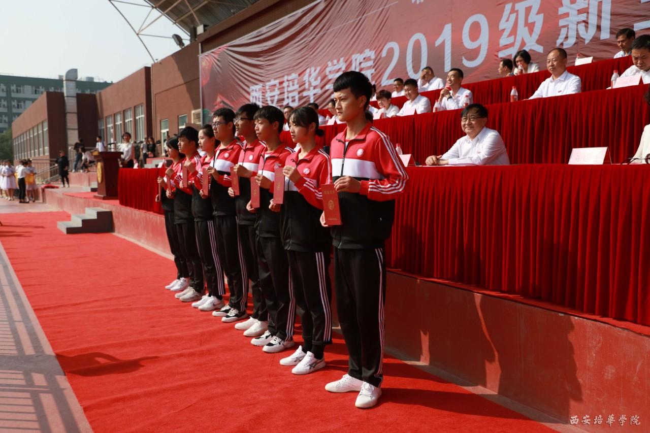 今年学校斥资200万设立新生奖学金,共有1174名同学喜获表彰,军训汇演结束,校领导为新生奖学金代表颁奖,并为他们佩戴校徽,意在提醒同学们把自己的发展融入学校实现百年培华的壮阔奋斗中,将自己的名字写在培华腾飞的光辉历程上。