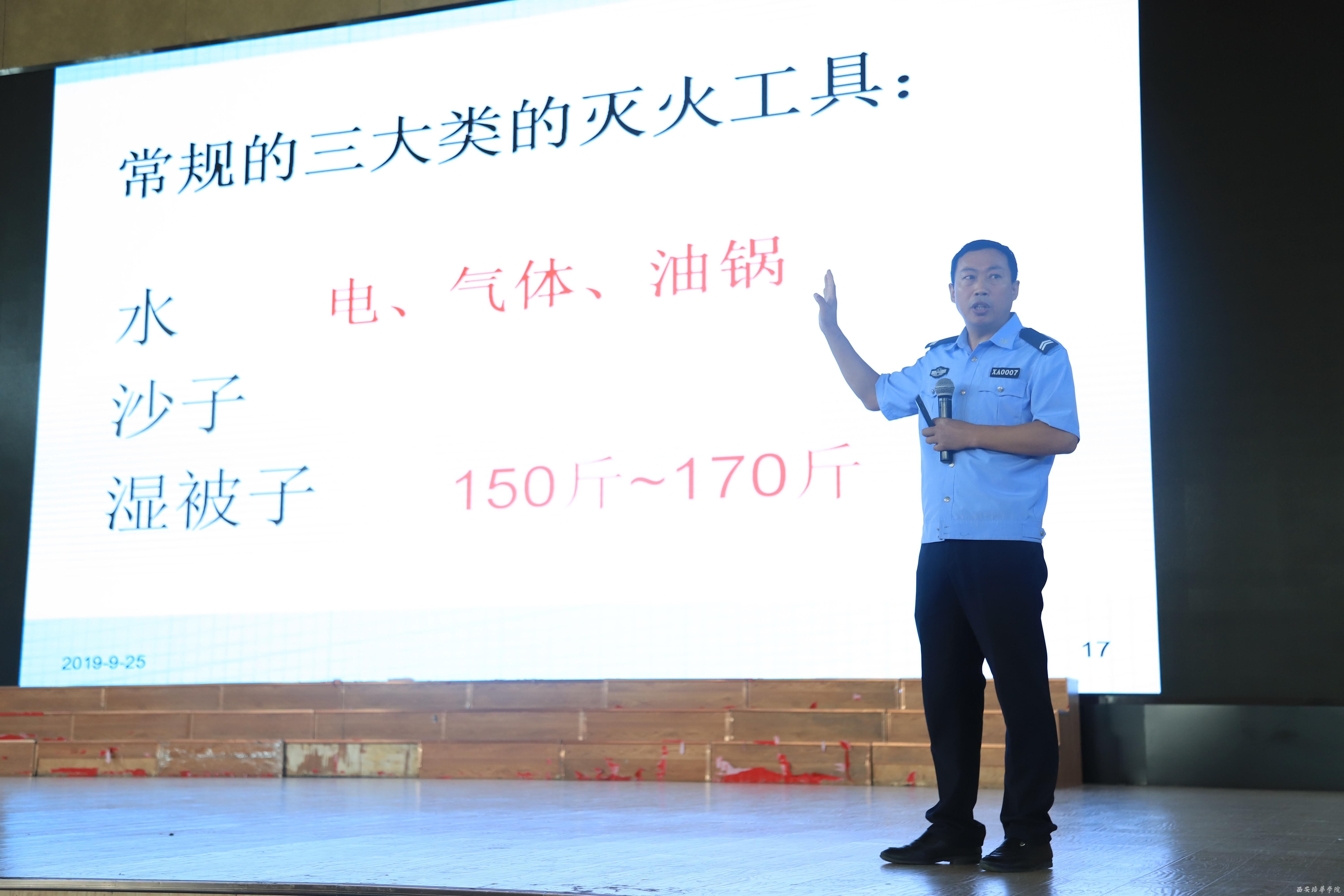 陕西消防协会消安防火中心高级教官党红斌为2019级新生开展专题消防知识培训