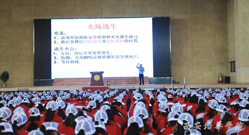 为了更好地教育培养新生安全防范意识,让新生充分认识和了解消防的重要性,增强新生处置突发事件和有效的预防火灾及安全自救能力。9月25日,后勤服务中心协同学生服务中心,特邀请陕西消防协会消安防火中心高级教官党红斌,在我校体育馆对近7000余名新生开展消防知识专题培训。