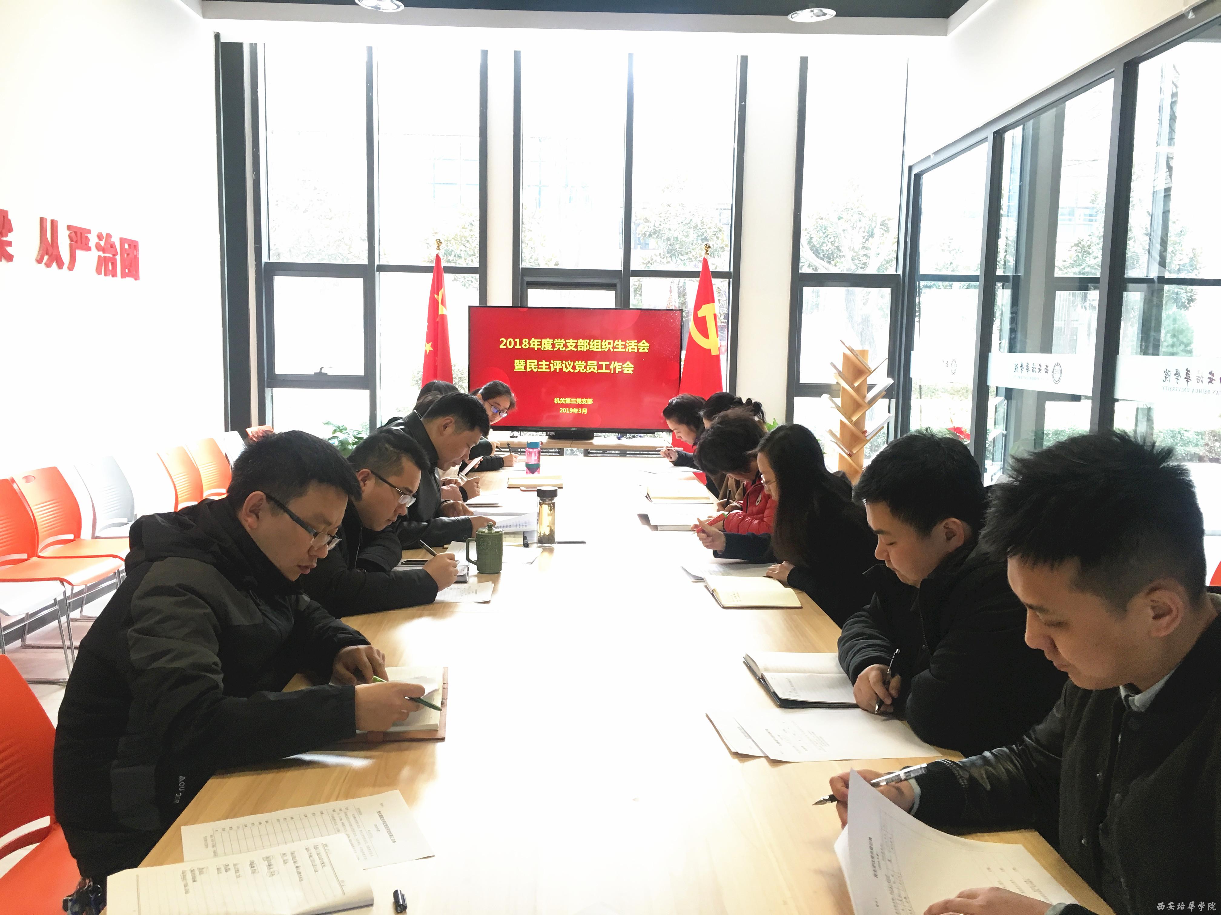 为深入落实学校党委《关于认真开好2018年度组织生活会和做好民主评议党员工作的通知》要求,3月8日上午,机关三支部组织召开了2018年度党支部组织生活会暨民主评议党员工作会。支部全体党员参加会议,对照党规党章,结合自身工作、生活实际自我检查,自我剖析,开展批评与自我批评。