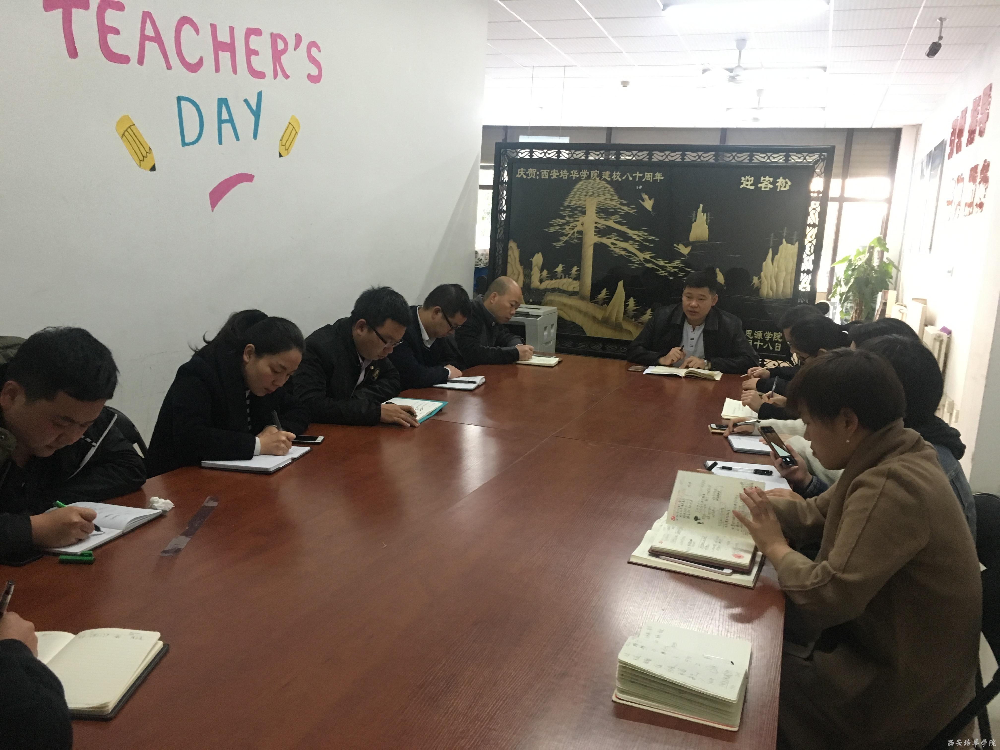 为认真落实《西安培华学院教育教学思想大讨论实施方案》的通知,10月29日上午,学生服务中心召开教育教学思想讨论启动会,学生服务中心副主任、团委书记蔡亮,学生服务中心副主任张静远,及全体人员参加了会议。