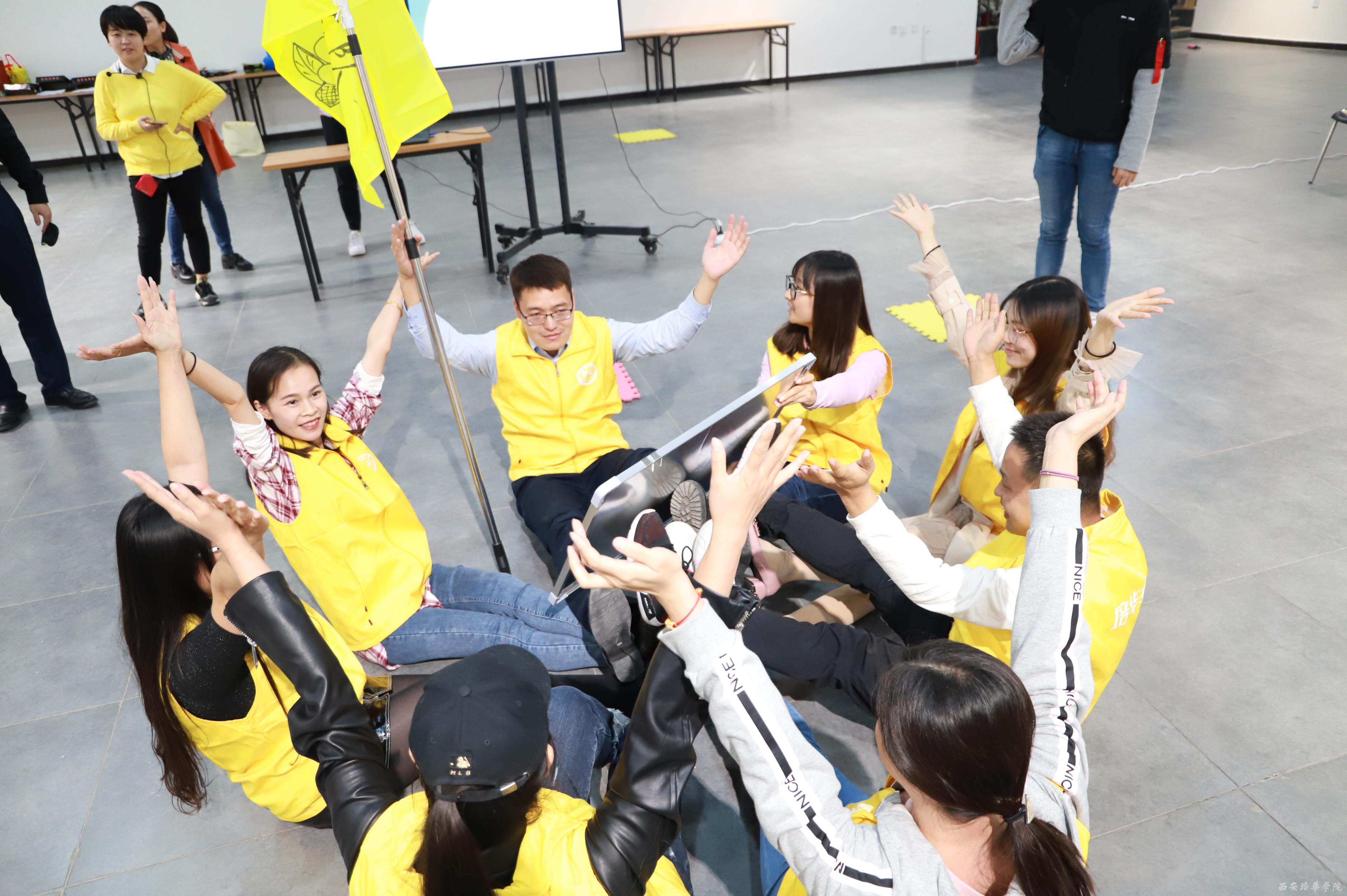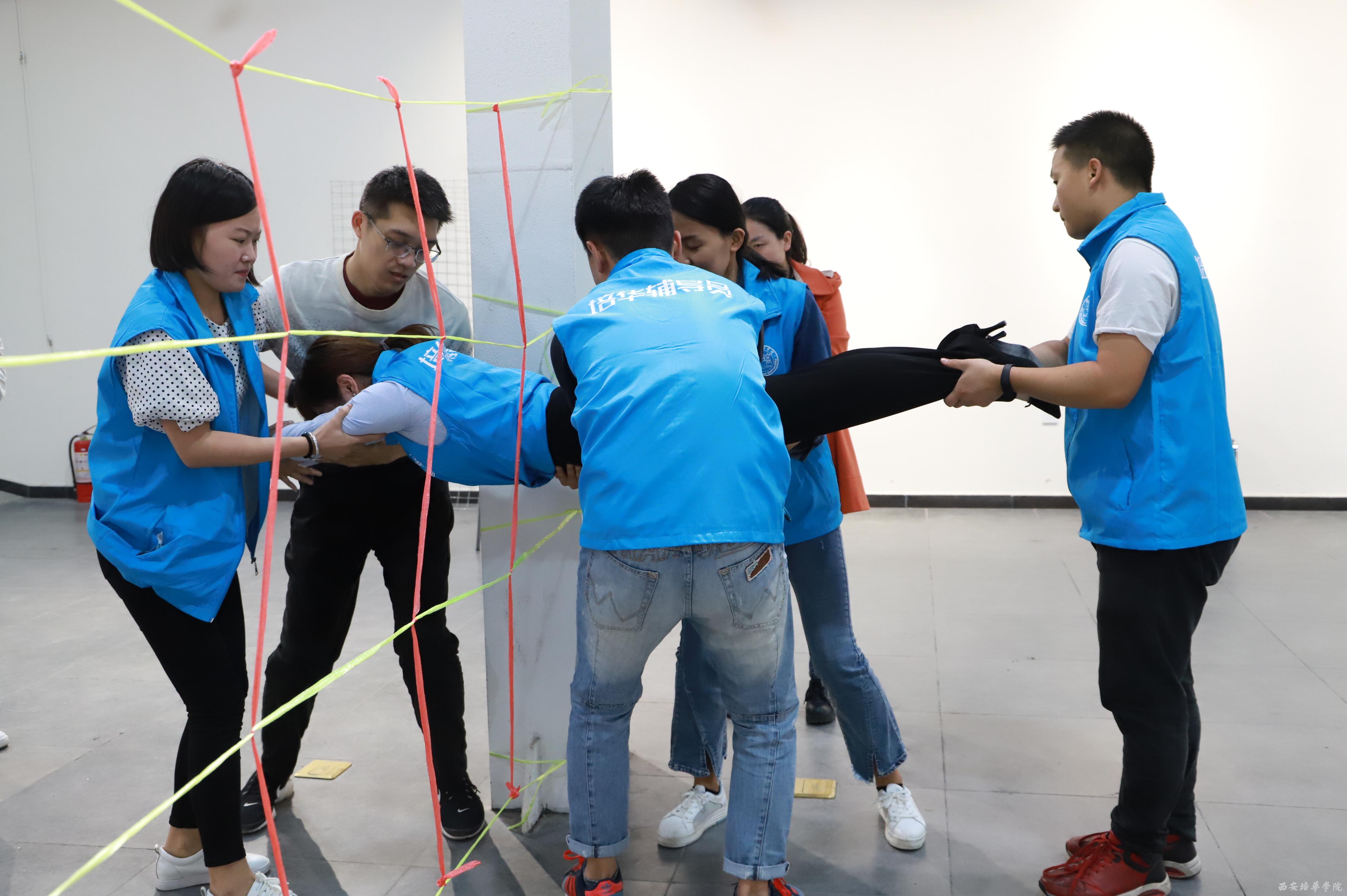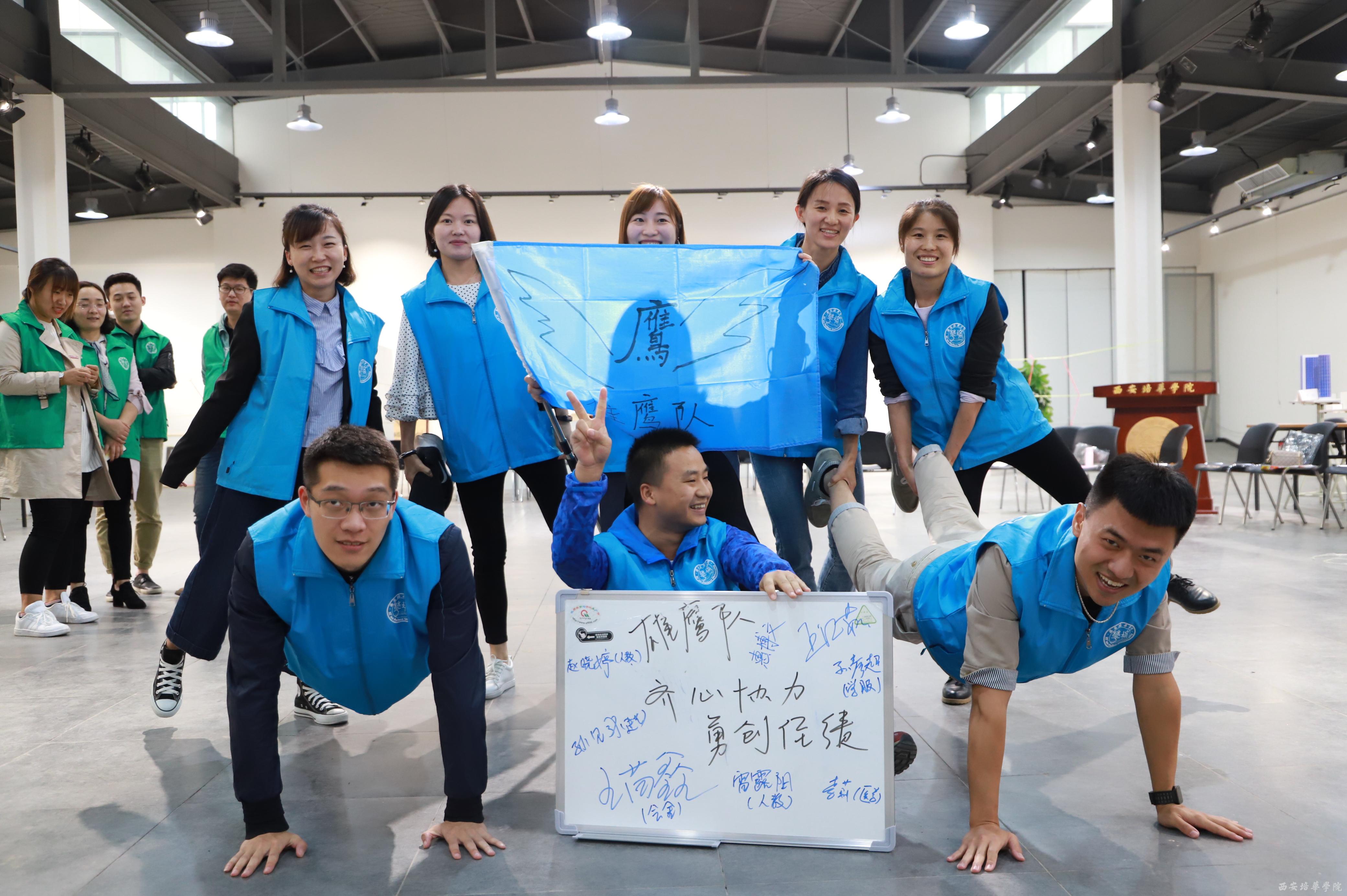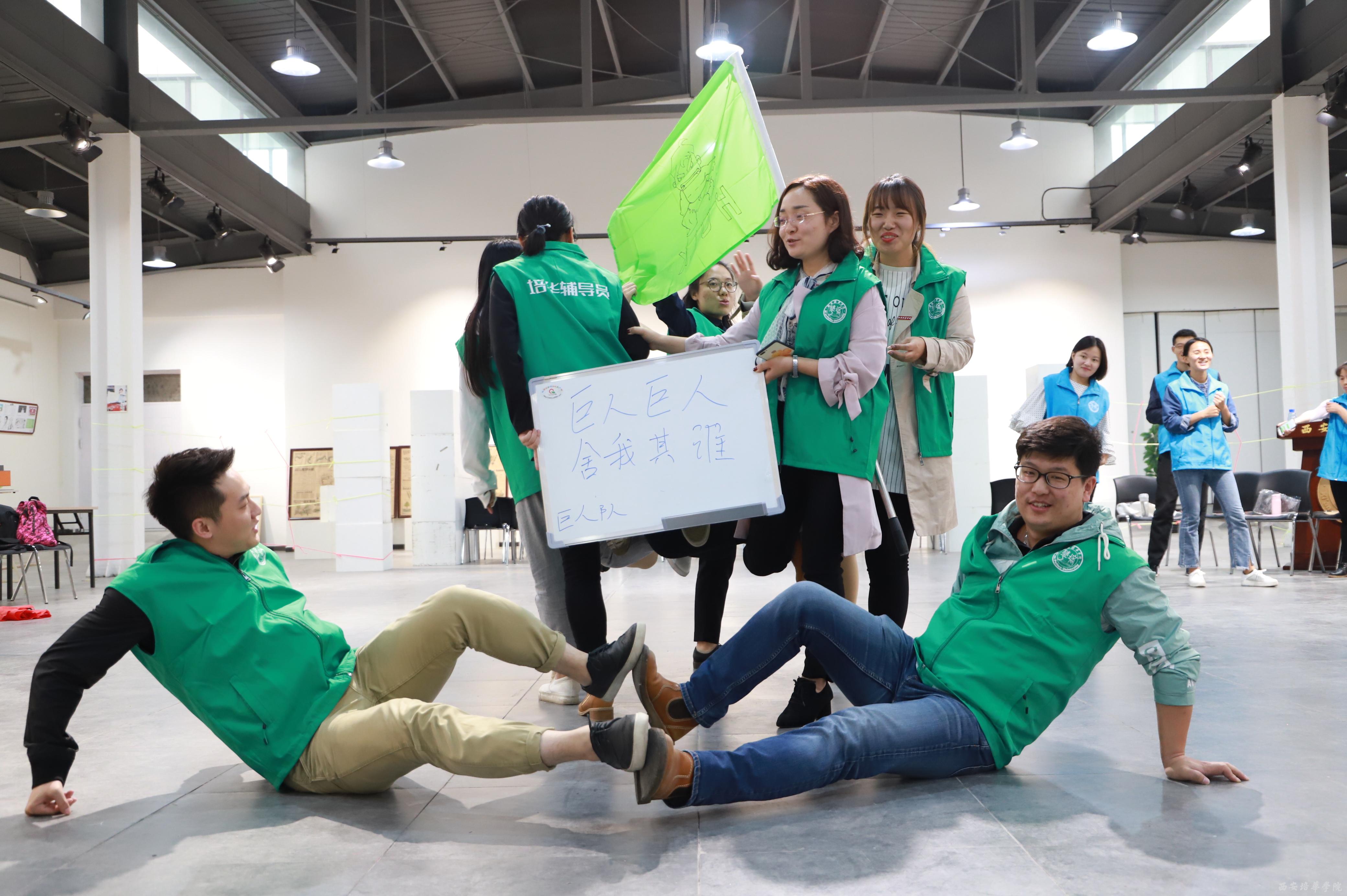培训初始,在破冰环节,辅导员们在教练的引导下,很快分成了雄鹰队、巨人队、飞虎队、向阳花开队四个小队,每个小队都集思广益,起队名、定队歌、想口号、摆造型……准备直面接下来的挑战。