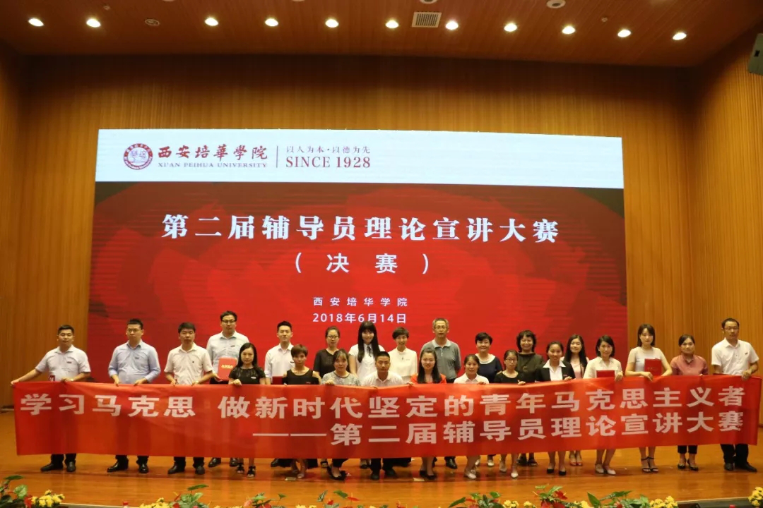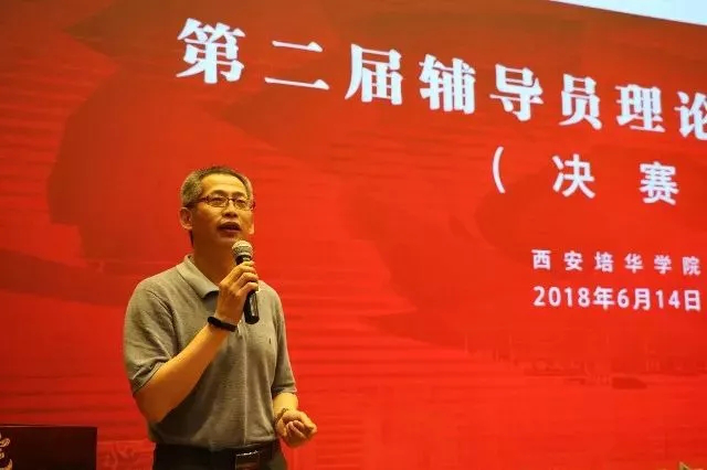 6月14日下午,我校第二届辅导员理论宣讲大赛(决赛)在维之图书馆报告厅举行。我校理事长姜波博士,党委书记胡俊生,党委副书记、副校长姚文静,以及各二级学院党总支书记、辅导员、学生代表共400余人参加了本次大赛。大赛评委由陕西省学工系统思政专家,陕西师范大学机关党委书记刘建军教授,全国高校辅陕西省优秀辅导员十九大精神巡讲团成员,第八届“全国高校辅导员年度人物”入围奖,陕西省十佳辅导员,第五届全国高校辅导员职业能力大赛三等奖获得者,西安电子科技大学王艳老师,学工部部长徐莹,思政部主任史晓眉,党委工作部部长陈玲,辅导员代表担任。