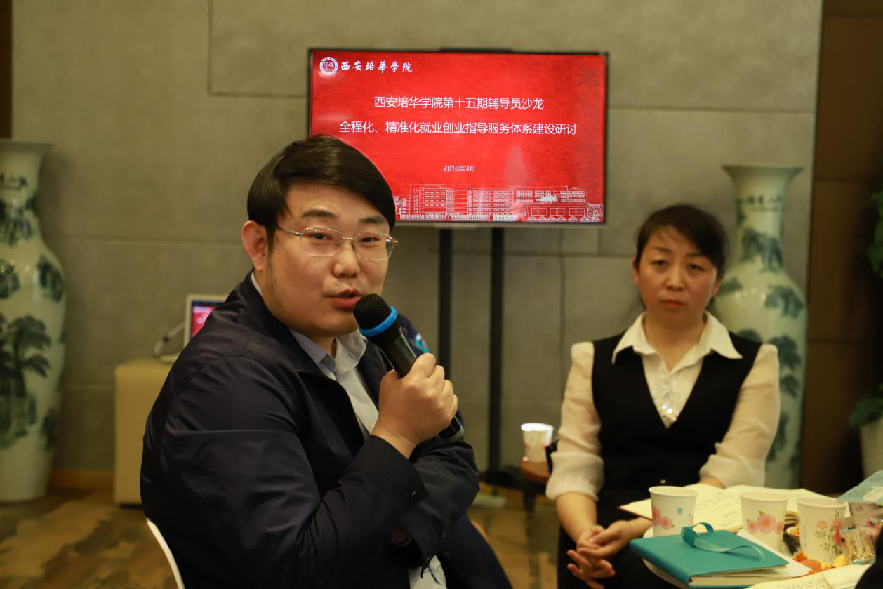 本次沙龙活动由招生与就业指导中心副主任王琳主讲。她希望通过本次活动,可以了解到一线辅导员对全程化、精准化就业创业指导服务体系执行层面的真实感受,与大家一同探讨遇到的困难和问题。她强调,培华学院获评“陕西省就业创业指导服务示范机构”、“创新创业典型经验50强高校”以及学生对就业指导服务满意度的提升,这无疑是对辛勤奋斗在培华教育一线的老师们最大的鼓舞,不断改进,期待在新一届毕业生就业工作中能够取得更大的进步。