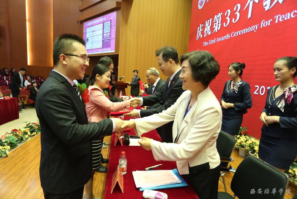 颁奖结束后,分别由获奖个人和学生代表发表感言,教师代表王菊宁讲到,作为教师,我们明白我们所从事的职业是一个需要用爱与责任支撑的职业;我们会把自己的爱与责任和知识完美的融合,用自己的热情去完成育人的目标!教育是爱的共鸣,是心和心的呼应。教师只有钟爱学生,才能教育好学生,才能使教育发挥最大限度的作用。招生与就业指导中心主任鲍伟讲到,今天,这份荣誉,既是对我们的肯定,更是对我们的鞭策,百年培华,责任在肩,任重道远,我们不敢有半点懈怠。明天,我们将携手并肩,不忘初心,继续前行。学生代表单帅伟发言,她回忆了大学两年与学业导师、生活生涯导师之间的感动故事。她说,老师们的唠叨、严厉、不近人情都是因为爱。她会从自己日常学习生活的点点滴滴做起,始终保持坚定不移的理想信念和认真努力的学习态度,坚守朴实,追求崇高。今后,无论身处何方,人在何地,都会一直关注母校、牵挂恩师。