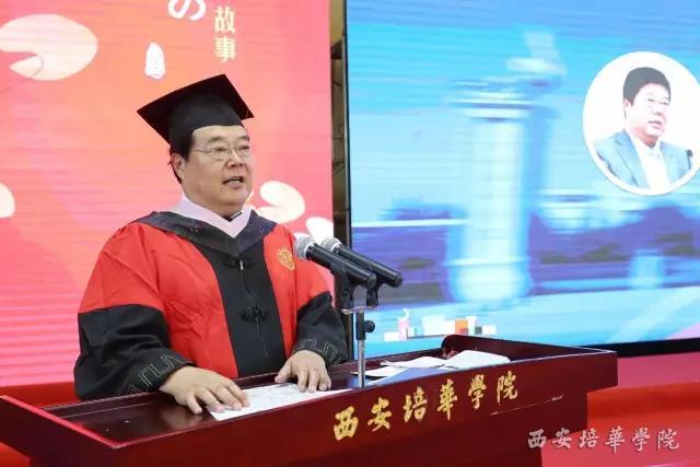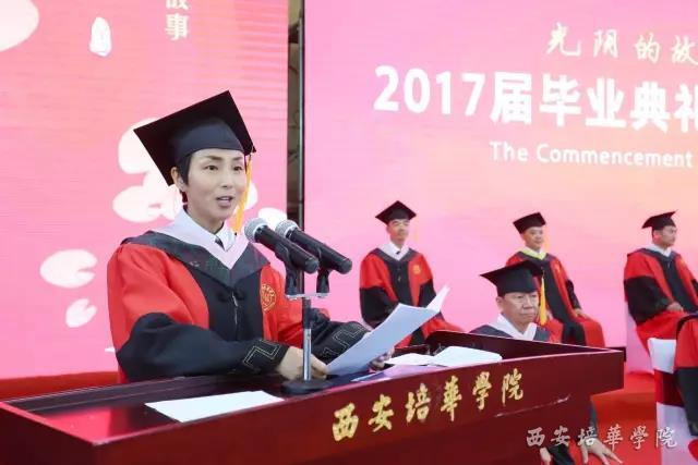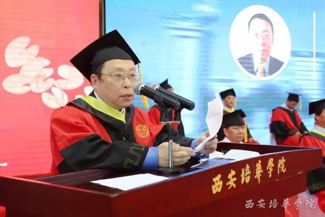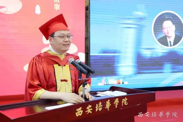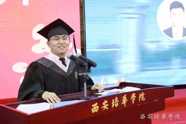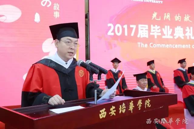 省政协常委、西安培华学院姜波理事长代表学校领导班子及全体教师,向圆满完成学业的2017届毕业生们表示由衷的祝愿,向多年来为同学们的成长辛勤付出的老师和家长们,致以崇高的谢意。他分享了自己的亲身经历和奋斗故事,以此激励毕业生们走向社会后,继续追逐自己的梦想。
