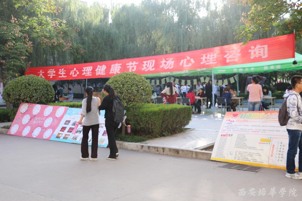 10月23日下午,我校第十三届心理健康节现场心理咨询活动在心理健康教育中心吕改莲主任与杨书慧老师组织安排下于文化广场如期举行。段茂贤副校长,学生处李爱琴处长、吴博副处长莅临咨询现场指导工作。