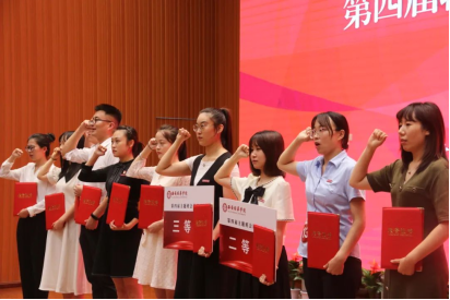 ▲副校长、党委副书记姚文静为一、二、三等奖获得者颁奖
