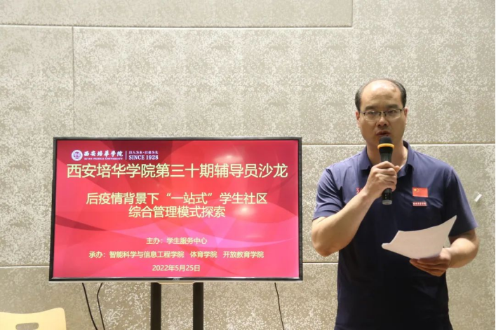 为切实加强辅导员队伍建设,探讨推进后疫情背景下“一站式”学生社区综合管理模式,进一步促进辅导员之间的交流与学习。5月25日,由学生服务中心主办,智能科学与信息工程学院、体育学院、开放教育学院承办的第三十期辅导员沙龙后疫情背景下“一站式”学生社区综合管理模式探索在辅导员之家举办。参加此次活动的有学生服务中心主任蔡亮,学生服务中心副主任姚斌,各二级学院党委书记、副书记及部分辅导员代表。
